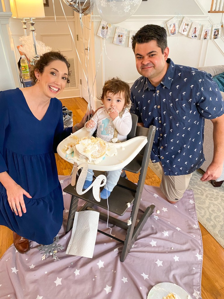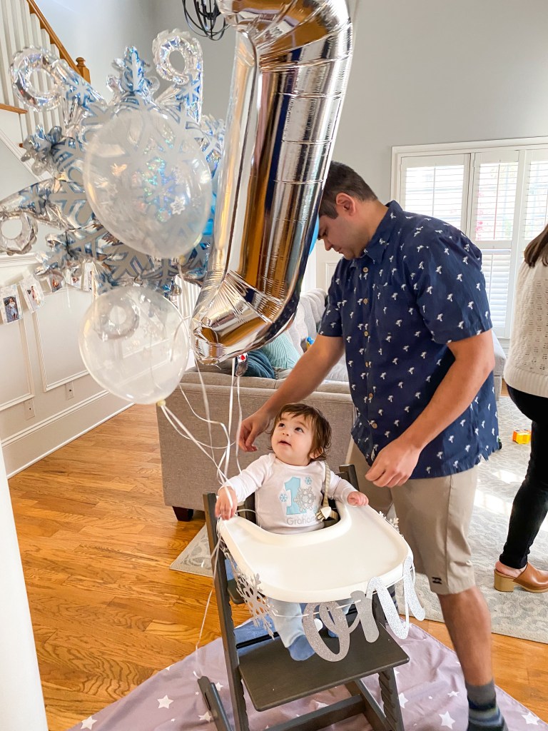 Graham had a wonderful first birthday party at our home on the day before his actual birthday. I decided on a “Winter Onerderland” theme. We served potato soup and chili and had a hot chocolate bar to go with the theme. I set up a cookie decorating and snowman making station outside for the few older kids that came. My coworker made the most adorable shirt for Graham to wear. I think the whole party turned out really cute. Graham had a good time with all of his new toys and books, and of course the wrapping paper. We had such a good time celebrating with friends and family! I was so thankful to be able to have a small get together safely in our home this year! As you can see from the photos the smash cake was a huge hit. All it took was one bite and Graham was ready to demolish the cake. We love our one year old boy!!