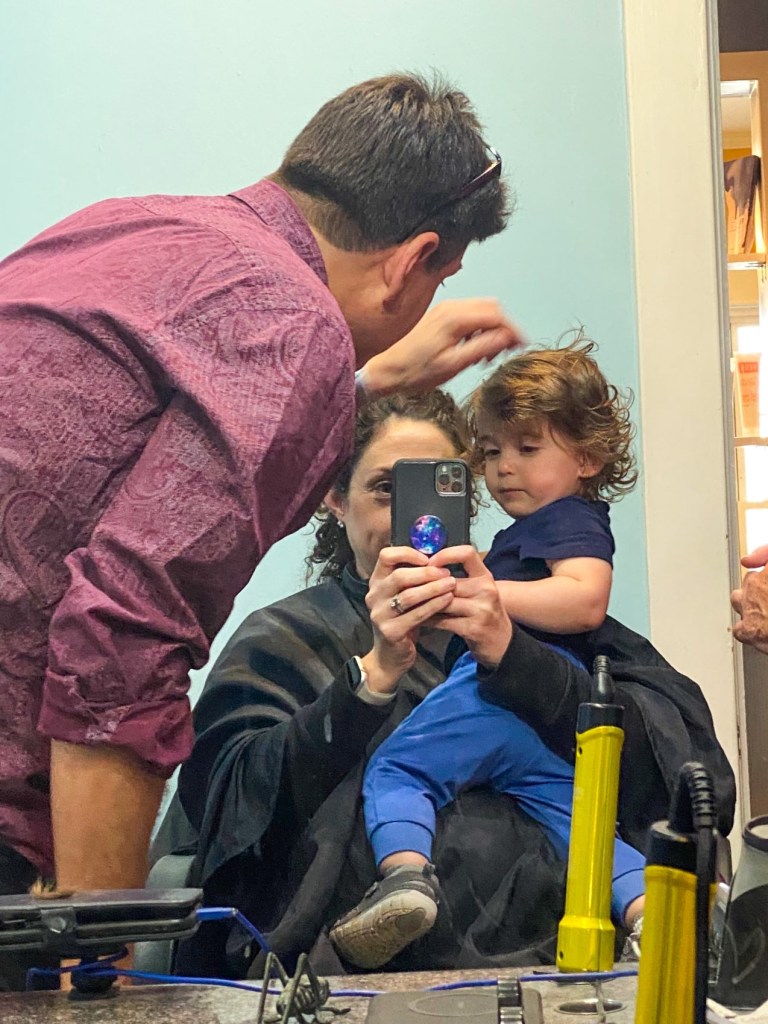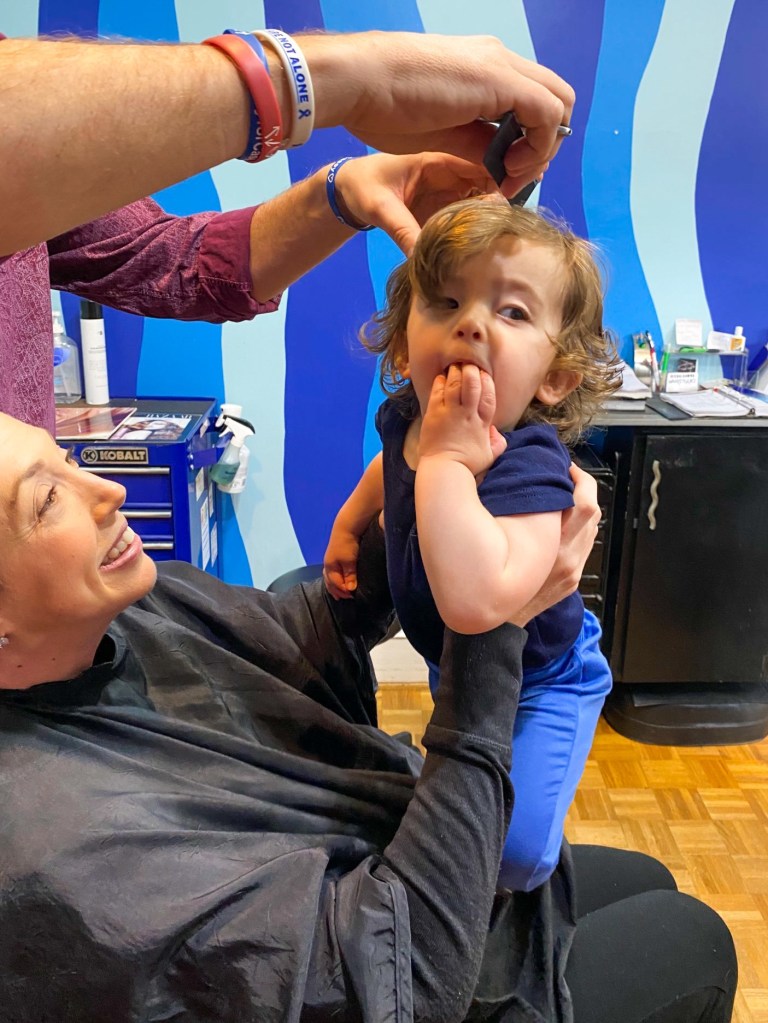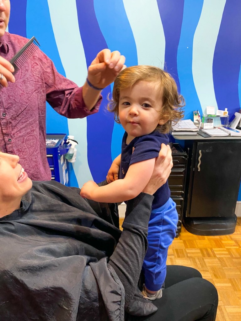 We had a special day getting Graham’s first haircut. Mike gave me my first haircut when I was about 2 years old. He was fresh out of school and for some reason he just hit it off with my family! He has been doing all of our hair pretty much ever since then. Graham is the fourth generation of our family to see Mike! Dadima and Pop Pop, Aunt Jody, and Penny all joined us for the haircut. Graham was such a good sport, just eating crackers and letting Mike trim up his hair. We had a very tiny little trim done just to get it out of his eyes and got the back trimmed up so it would be more even. I just love his hair so much and didn’t want to loose the baby curls! Although, I’m pretty convinced he is going to end up with my curly hair, it looks a lot like mine did when I was little. We went for pizza and ice cream afterwards to celebrate what a great job Graham did!