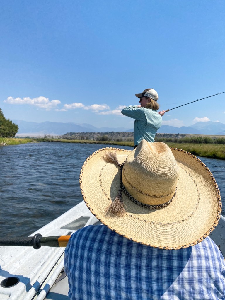 The next day we were up bright and early for our first guided fly fishing trip. We fished the Madison River with guides from this company. We met up with the guides super early due to something called Hoot Owl Restrictions, we had to be off the water by 2 pm, so in order to get a full day in we had to leave by 6 am. We split up and the girls went in one boat and the guys in the other. If I’m being honest we kind of hated our guide. The guys had a guide that was having all the fun and we had a guide that was all kinds of serious and taking his job way too seriously. But overall we still had a great day, we caught a few fish enjoyed the beautiful scenery and the lunch that was included was surprisingly good as well!
