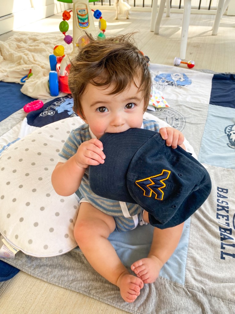 Ten whole months with you! Only one more monthly update and you will be one!! You are such a joy! We had your nine month check up and you are still growing like crazy. This month you got so much faster and are on the move EVERYWHERE! We can hardly keep up with you. You found Bertie’s food and water and we have to be quick to keep you out of her bowls. You discovered playing in the pantry with all the condiments. We’ve been working on slowly adding in more and more food to your diet, but avocado is still your FAVORITE! We went to a Dash game with Papa Sam that you really enjoyed. Aunt Amy gave you a ball pit that has been a big hit, you love playing under or inside things. Under the furniture especially. You’re showing more interest in books now, you play with them on your own and turn the pages. Mom and Dad celebrated their second anniversary, the last two years have flown by! Keeping up with the past months, you got sick from daycare again… this month was hand, foot, and mouth. We were so lucky that it never bothered you. You had a rash all over your body that you never even noticed. We’ve been spending most of our weekends on the back porch watching football and you just play and play in the floor. You’re still not the best sleeper, naps are not your jam and you’ve been going through phases of sleeping well at night and then getting up several times at night. You have eight teeth now and your little grin is just the cutest! We love you big little one!!