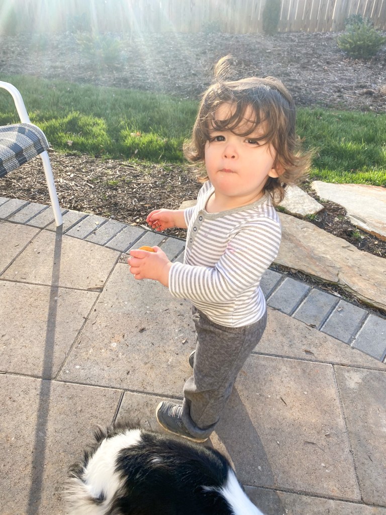 Once we were home she was able to meet Dadima and Pop Pop before we went to daycare to pick up Graham so he could meet his sister. Graham was happy to see us after being with Aunt Jody and Dadima and Pop Pop for a couple of days. When we got home to meet Ellis Ann it was very uneventful, Graham noticed that she had a paci and he wanted it for himself, but other than that he went on his way, which was funny enough in its own way. It was so nice outside that we loaded her up in the stroller and went for a walk to enjoy some fresh air.