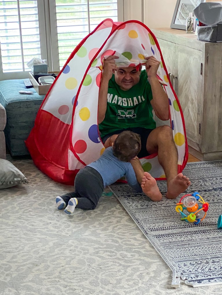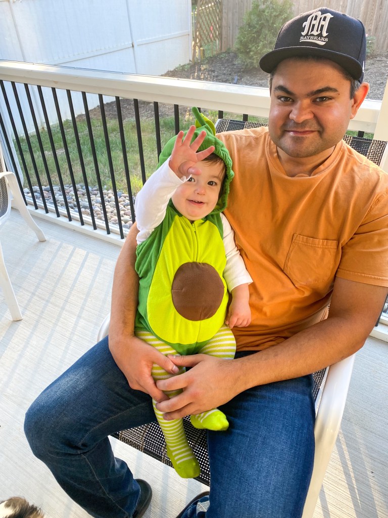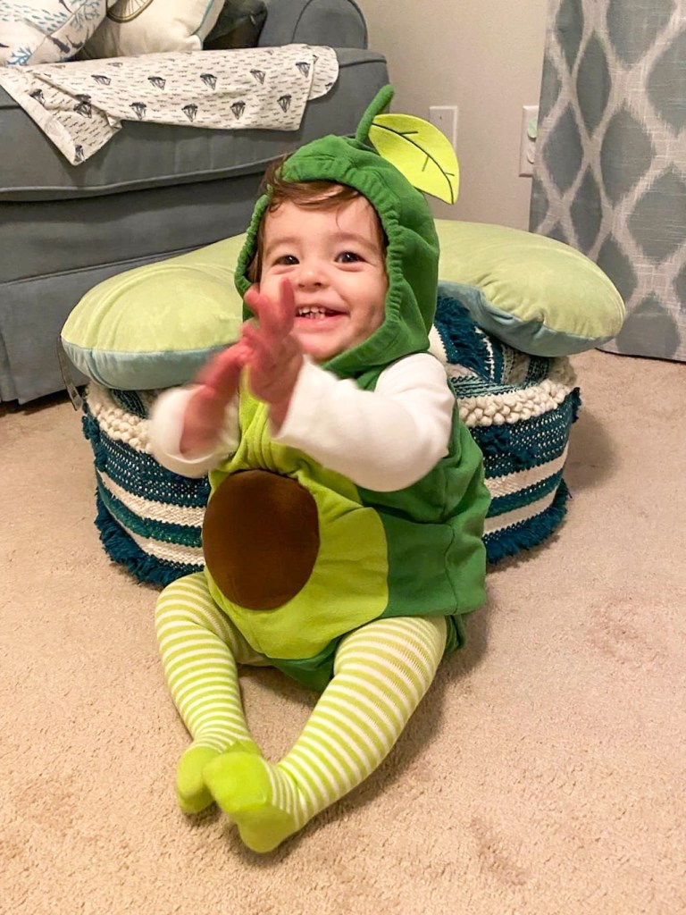 Eleven months with you! It is so hard to believe that in a few short weeks we will be celebrating your first birthday! This has been a huge month of milestones for you! You already seem like such a big boy compared to only a short time ago. You started pulling up to stand on everything this month. You first started around 44 weeks and as soon as you did that it was off the the races, you can pull up and walk along the couch now, the wall, the kitchen cabinets, and the bath tub. Anywhere really. Your crawling is getting faster and faster too! I know its only a matter of time before you can walk on your own! At the prodding of your teacher we finally expanded your diet this month. You’re eating meat, beans, noodles, and pretty much all the fruits and veggies now. Within a few days of starting to eat more food, you decided you were done with breastfeeding. At 45 weeks you nursed on Wednesday morning before school, and then on Thursday you were all done, wouldn’t hear of it. I was glad to be done if I’m being honest (you have eight teeth!), but I was more happy that it was your decision and it really wasn’t an issue at all! Your eating SO much food now! It is shocking to your Dad and I how much you can eat at a meal. You’re taking less and less milk from a bottle and have even dropped a bottle fed this month. We celebrated your first Halloween. You were the cutest avocado if I do say so! Dadima bought your costume since it’s still your favorite food it just seemed perfect to her. Mom and Dad went away on long weekend vacation to the mountains and you stayed home for a few nights with Dadima and Poppa Bob. We are so thankful that they have been so helpful and love being with you! You had a little sleep set back at the beginning of the month, but the last few weeks you have been doing great, sleeping until 7:30 or 8:00 in the morning. We are still working on naps, you’ve been taking a long nap at school, but so far won’t do that at home. You are talking more and more now and are a waving man! You wave at everyone we come across. On your 11 month birthday you surprised us by taking off up the stairs, you made it all the way up on your first try without any help! You are turning into a little boy right before our eyes and it is such a joy to watch! You are the sweetest boy and we love you so! We love you big little one!
