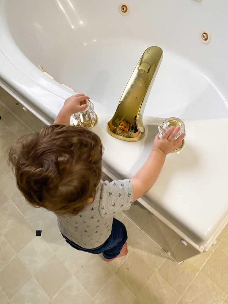 45 weeks – ON THE MOVE! Playing with your reflection in the faucet!