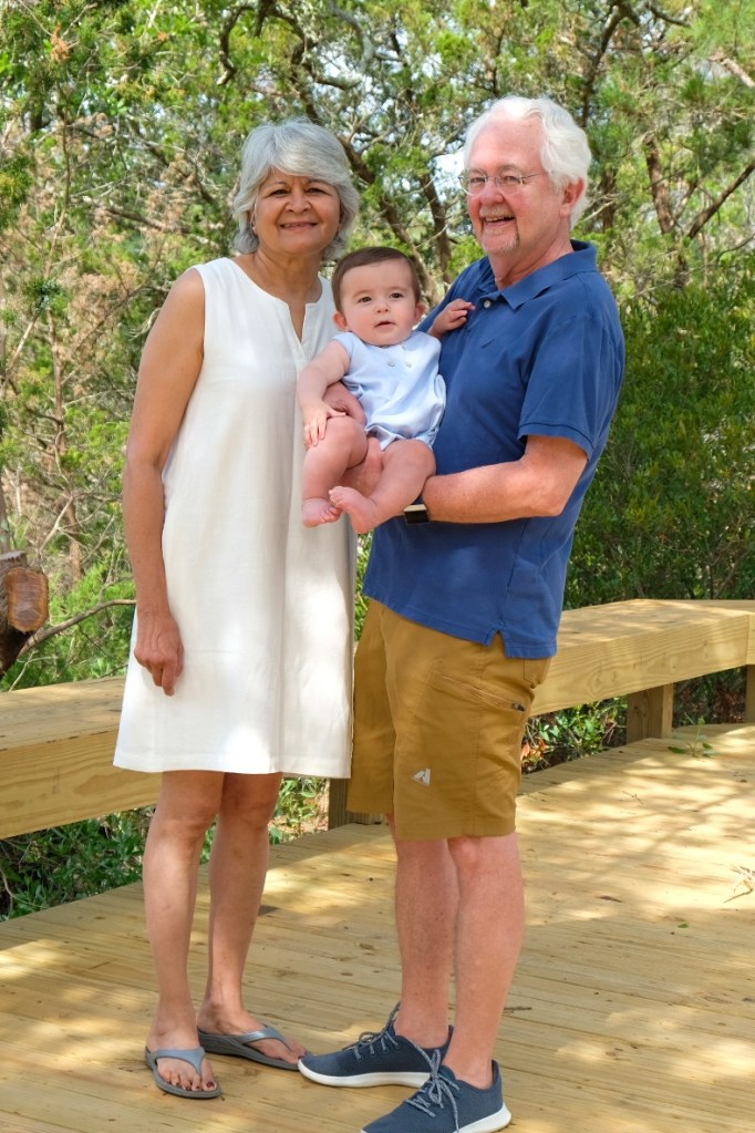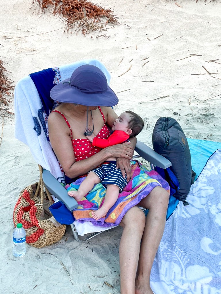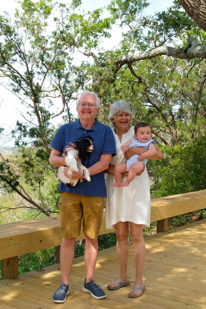 We spent 10 days at the coast on our first big family vacation since having Graham. It was lots of fun and family time! Graham was such a trooper in the car on the way there and the way back, such a great treat for us! We spent the first weekend with Aunt Jody and Penny. Graham went to his first restaurant, Provision Company! Sunday afternoon we left for the night to go to a wedding. It was so much fun to be with friends celebrating again! There were about 100 people at the wedding and it was absolutely gorgeous. All but 3 or 4 guests were vaccinated and it it just so great to finally feel safe gathering in groups and to see other people celebrating big milestones safely! We spent the night away from Graham for the first time and he did great with his Aunties. We came back from the wedding and ventured out to another restaurant! We enjoyed the view and the food and Graham was well behaved again! We spent the next couple days by ourselves out adventuring and checking out places we hadn’t seen before. We even attempted a hike, but it was too much even for the Bob. At the end of the week Sean’s family joined us. We celebrated Sean’s birthday. Graham finally got to meet his Aunt and Uncle. We had a fun pool day and a great beach day. Graham put his toes in the ocean for the first time. There were lots of lap naps and walks around town which we all enjoyed. And at Dadima’s insistence we had a family photoshoot since we had everyone together for the first time in over a year and a half. The pictures turned out well, and Bertie is quite a mood in them. She cracks me up. We’re looking forward to our next trip already. I hope Graham will grow up loving the water like me.